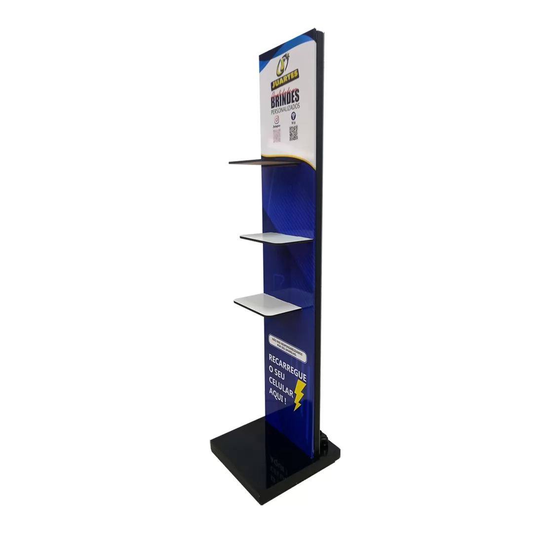Totem Com 3 Suportes Para Celulares e 05 eEntradas de Tomadas Para Carregadores