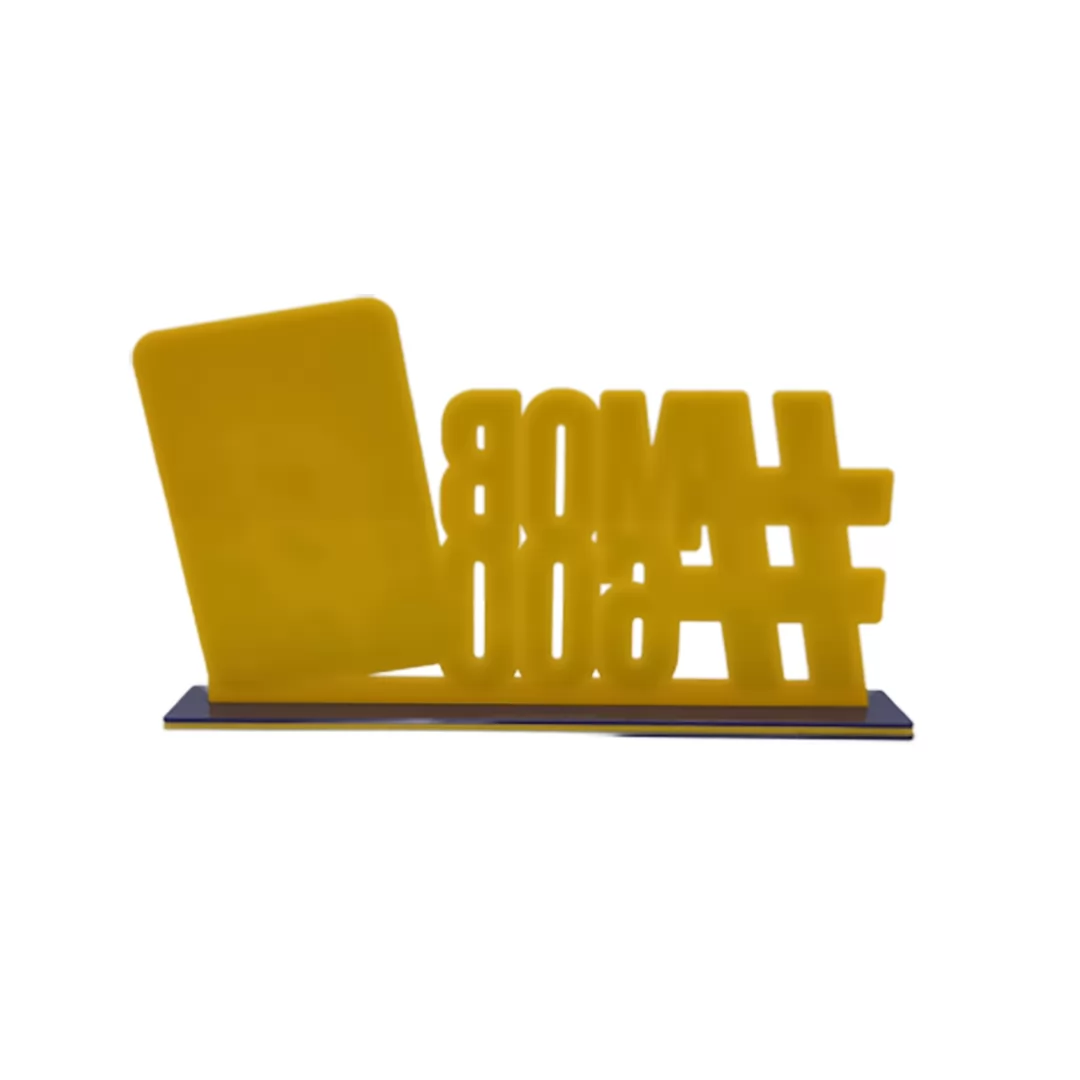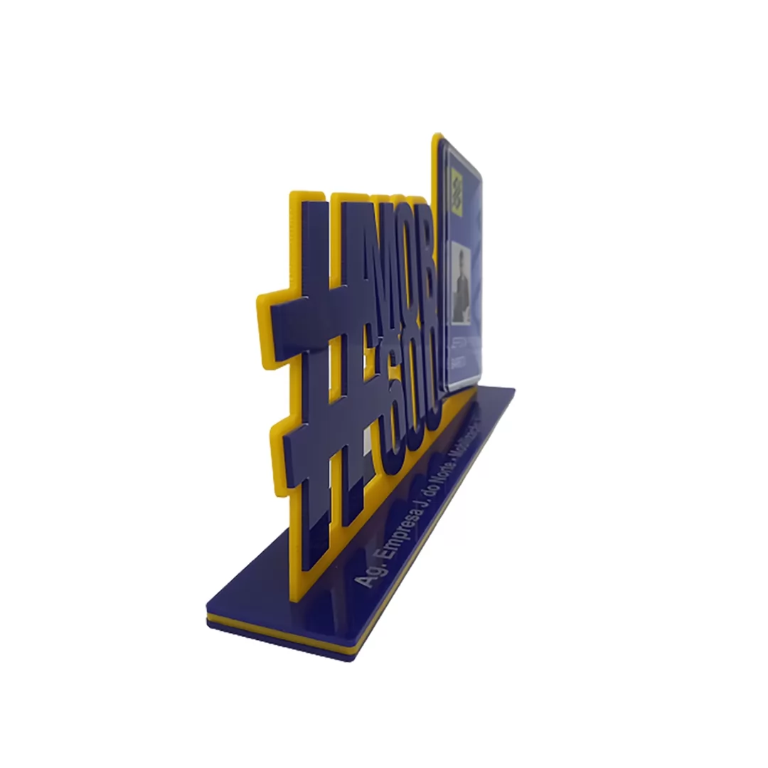 Sustentação: Acrilico amarelo de 3mm c/ aplique, acrílico azul 2mm